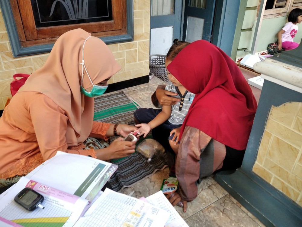 Kegiatan skrining ini difokuskan pada deteksi dini penyakit thalasemia dan diabetes melitus melalui pemeriksaan hemoglobin (Hb) serta kadar gula darah. Pemeriksaan ini bertujuan untuk mengetahui kondisi kesehatan balita sejak dini sehingga dapat dilakukan penanganan lebih cepat apabila ditemukan indikasi gangguan kesehatan.