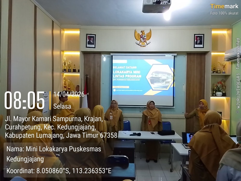 Kedungjajang, 14 April 2026 — UPT Puskesmas Kedungjajang kembali melaksanakan kegiatan Lokakarya Mini (Lokmin) lintas program pada hari Selasa, 14 April 2026. Kegiatan ini dihadiri oleh seluruh tenaga kesehatan, mulai dari bidan, perawat, hingga seluruh staf dan karyawan di lingkungan UPT Puskesmas Kedungjajang.