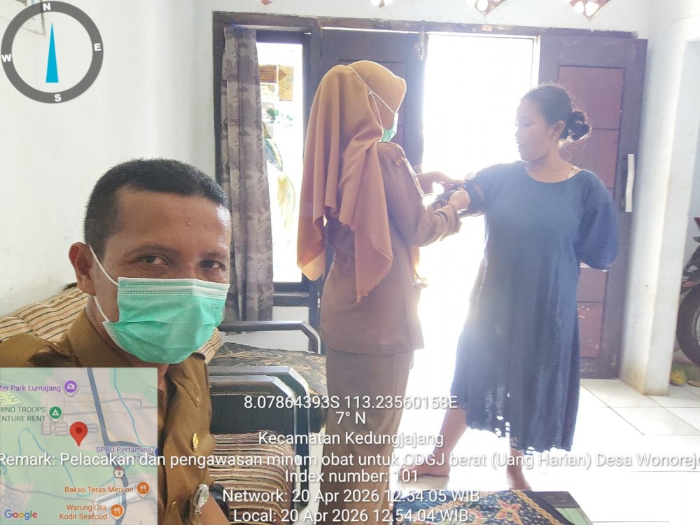 Dalam upaya meningkatkan kualitas pelayanan kesehatan jiwa di masyarakat, pemegang program kesehatan jiwa Puskesmas Kedungjajang, Bapak Siswo Purwono, melaksanakan kegiatan kunjungan rumah pada hari Senin, 20 April 2026. Kegiatan ini didampingi oleh perawat desa Wonorejo Kecamatan Kedungjajang, Ibu Reszeta Berliana Niltialoka.